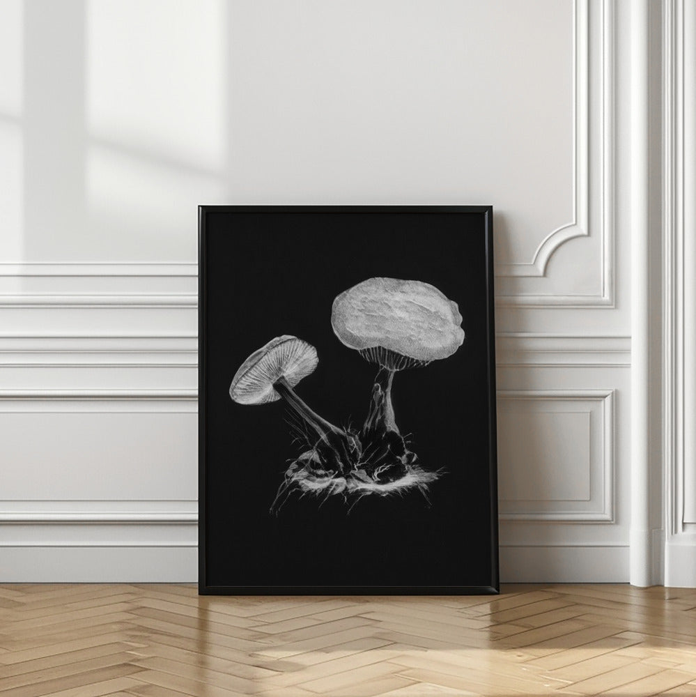 Vintage Violet Webcap Mushroom Dark BW