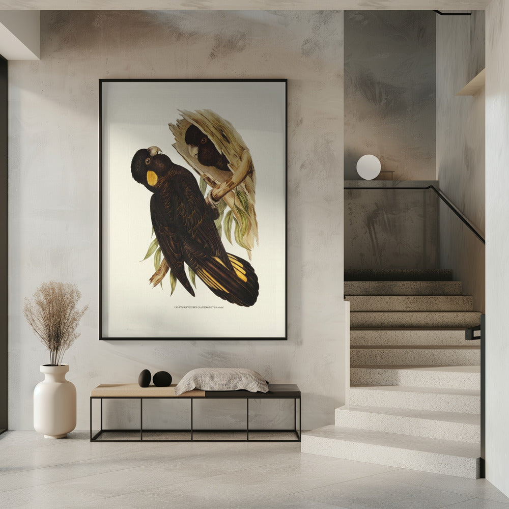Yellow Eared Black Cockatoo by Elizabeth and John Gould