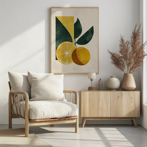 Yellow Lemon with Green Leaves Serenity by Annika Persson
