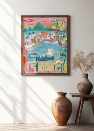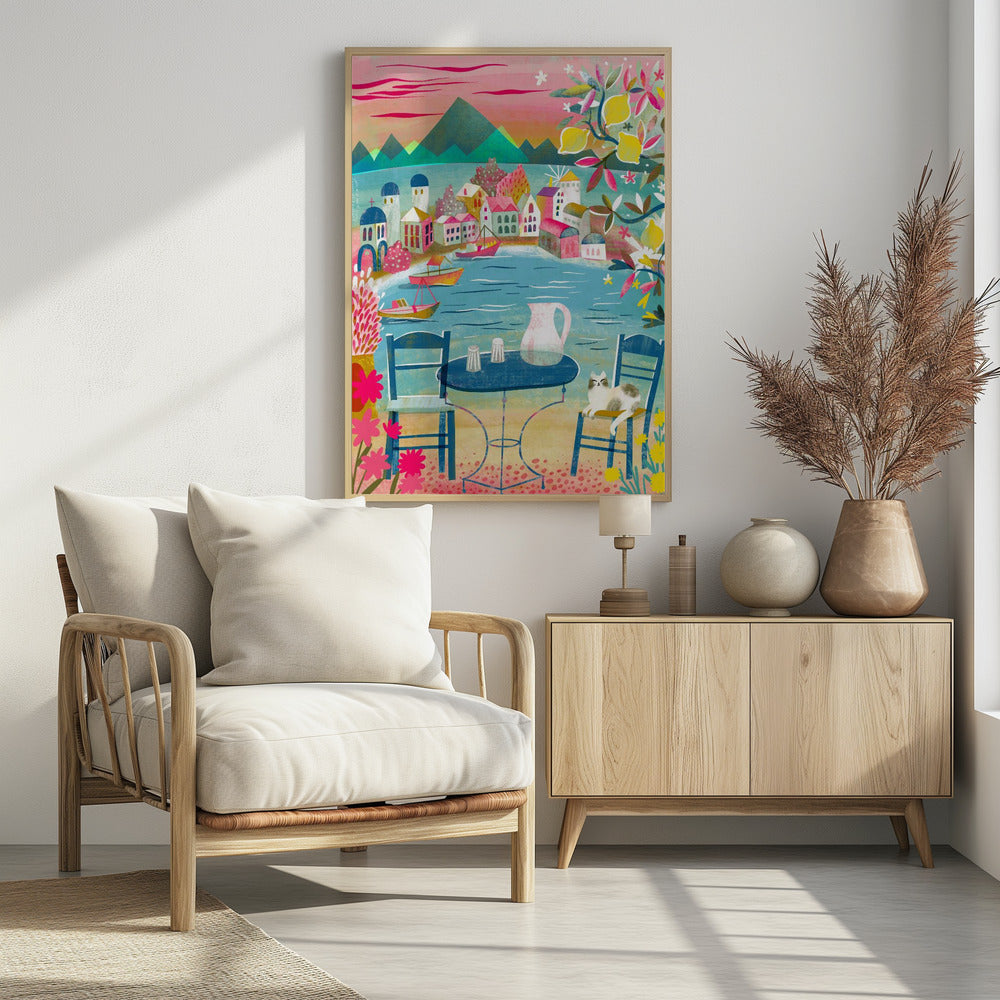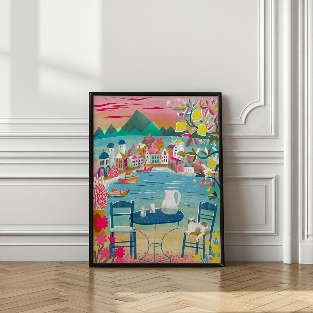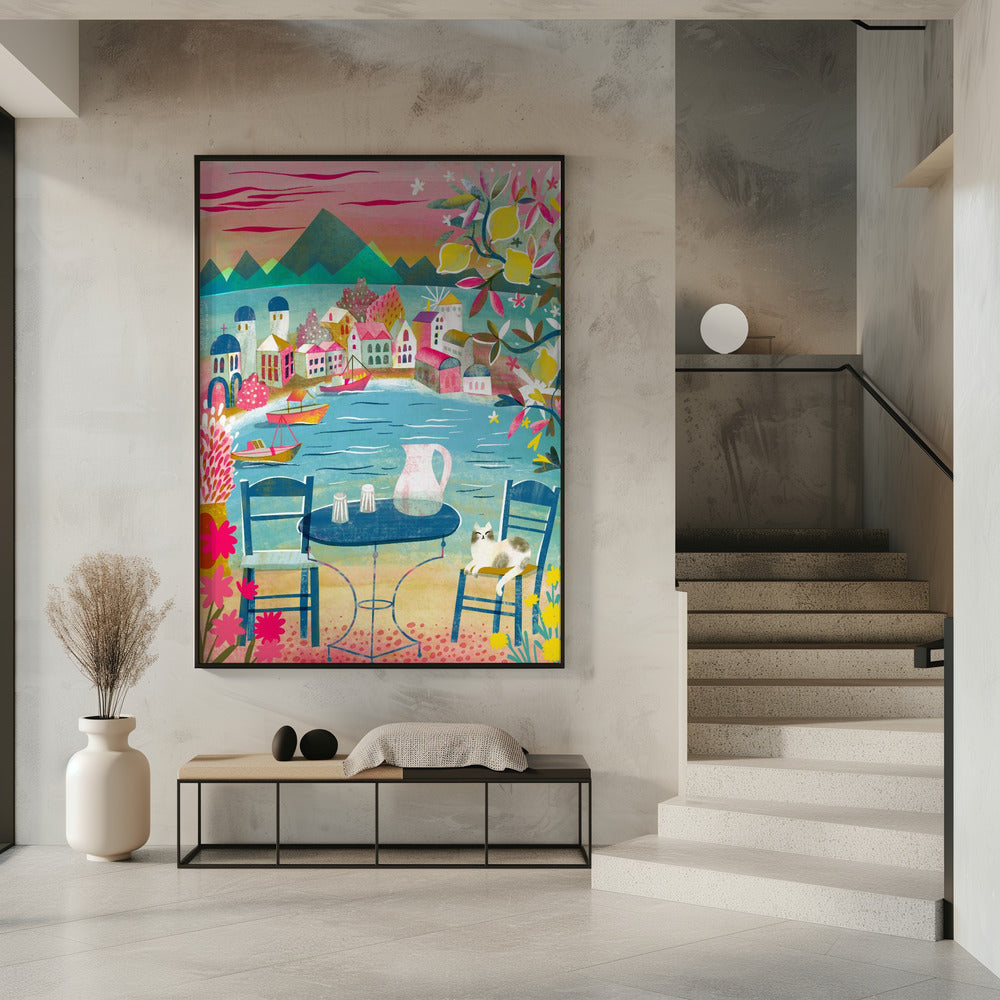 Greek Tavern With Cat Under Lemon Tree by uta krogmann