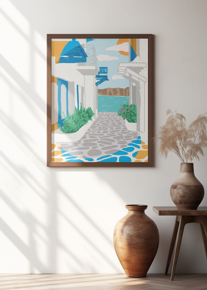 Carla DalySantorini, Yellow and White Greek Buildings by Artist Carla Daly
