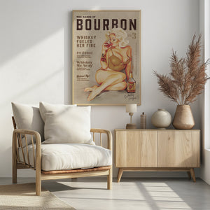 Bourbon Wall Art. Sexy Vintage Pin Up Girl Drinking Whiskey