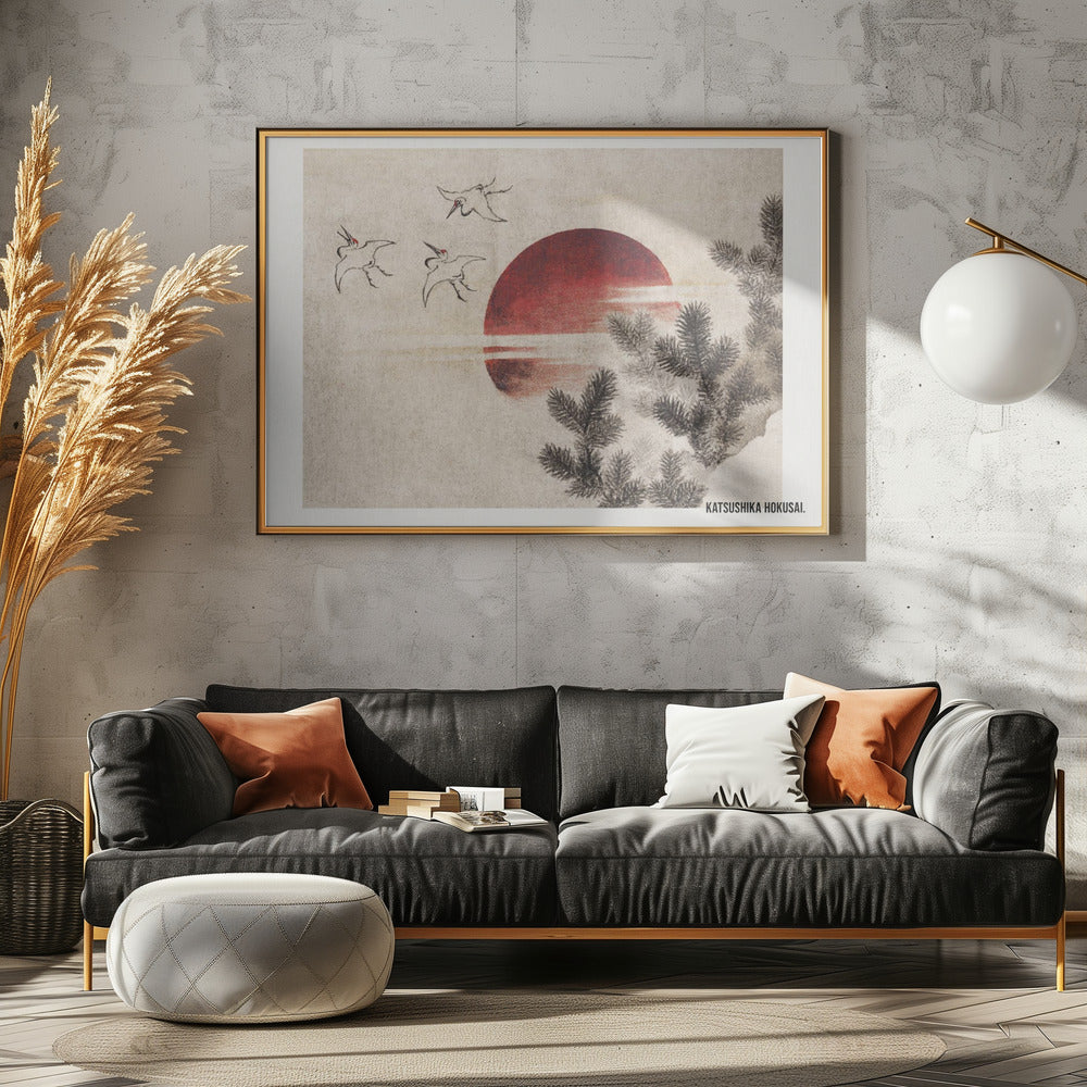 Birds and Sunset, From Album of Sketches (1814) by KATSUSHIKA HOKUSAI
