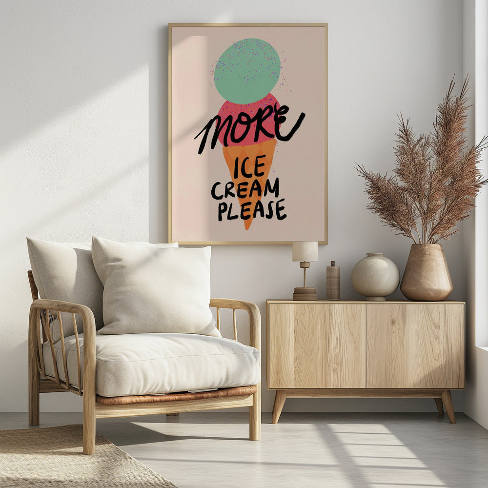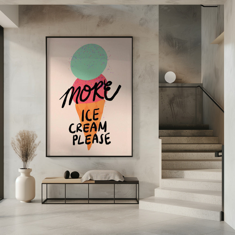 More Ice Cream Please Typography Poster by Dirkie Nell