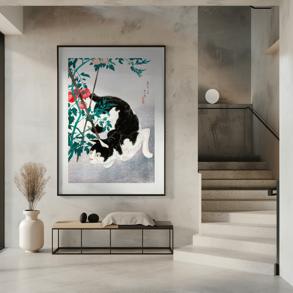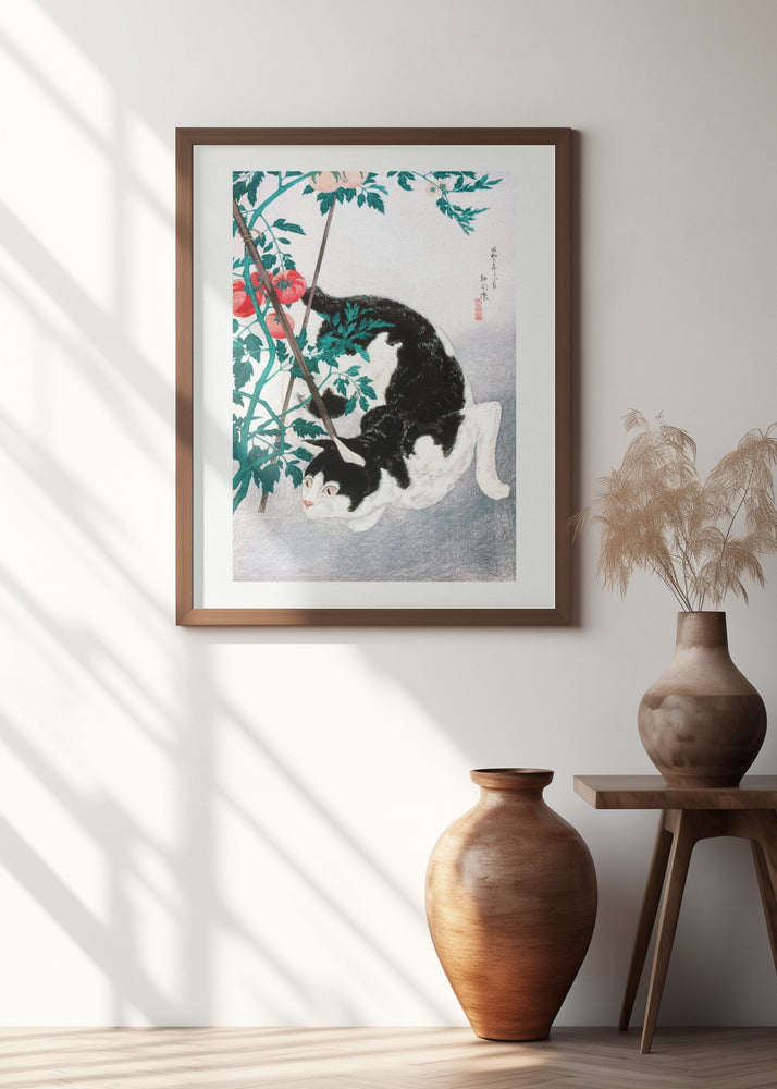 Cat With Tomato Plant (1931) by Hiroaki Takahashi