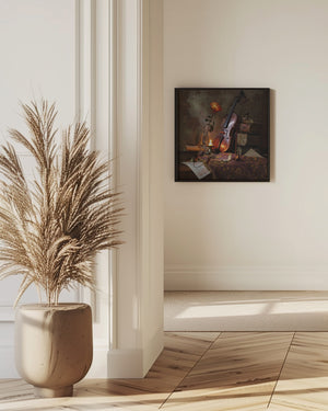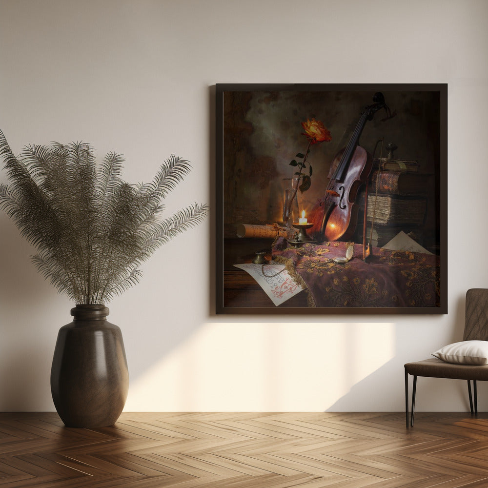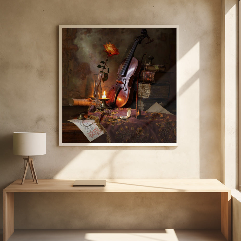 Still life with violin and rose